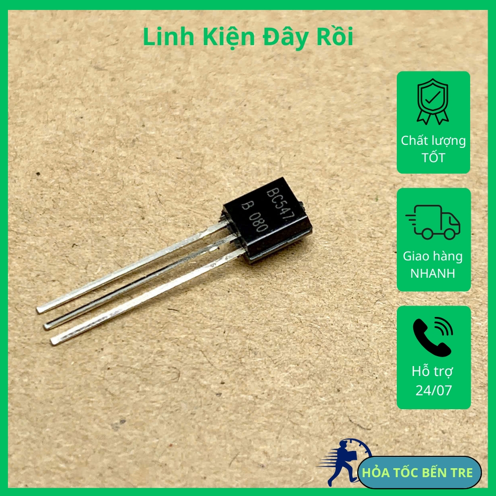 10 sản phẩm BC547 Transistor 45V 0.5A kênh NPN TO-92 hàng mới, có sẵn, đảm bảo chất lượng, ship hàng toàn quốc.