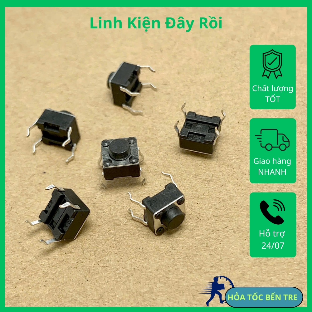 10 sản phẩm nút nhấn phím bấm 4 chân, kích thước 6x6x5mm, sử dụng rộng rãi trong các thiết bị điện.