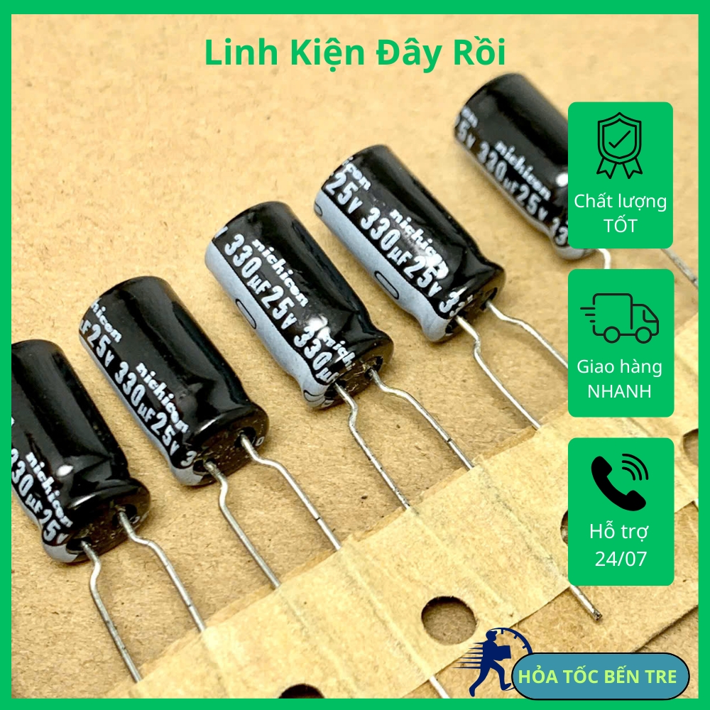 Tụ điện hóa 330uF 25V 330uF25V 8x16mm NICHICON hàng mới, có sẵn, ship hàng toàn quốc.