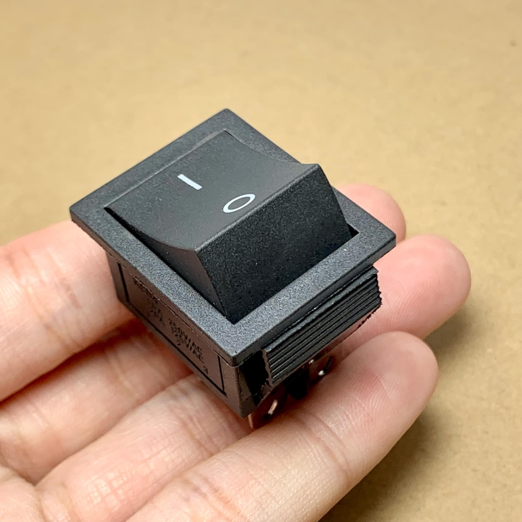 Công tắc hình con thuyền KCD4 2 chế độ 6 chân kích thước 31x25mm màu đen, thường dùng trong thiết bị điện gia dụng, công tắc máy hàn, công tắc hộp điện máy may.