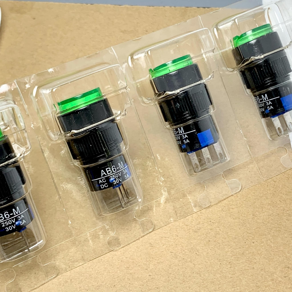 Nút nhắn AB6-M AC 250V 3A DC 30V 5A nút nhắn tròn 16MM 3 chân màu xanh lá, nút nhấn khởi động máy may lập trình khung lớn trần bông BOK HUITN JUITA JACK ZOJE SUNSIR.