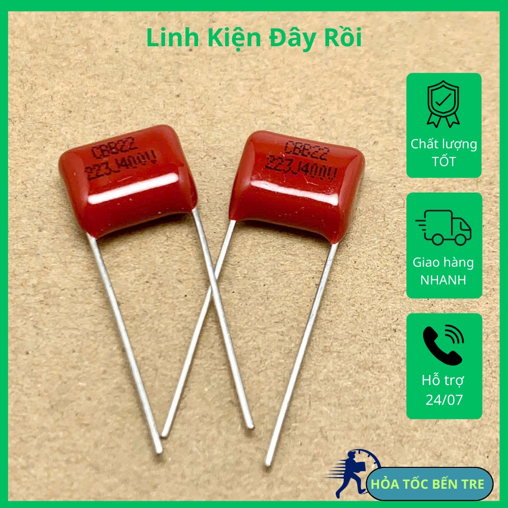 5 sản phẩm tụ kẹo CBB22 400V 22nF 0.022uF 223J400V ±5% hàng mới, có sẵn, đảm bảo chất lượng, ship hàng toàn quốc.
