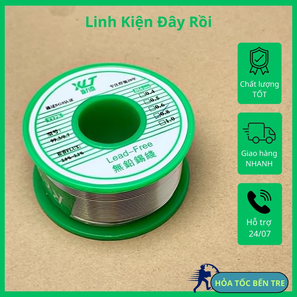 Cuộn dây hàn thiếc hàn không chì XLT 0.8mm 100g, có độ tinh khiết cao, mối hàn sáng bóng, bảo vệ môi trường.