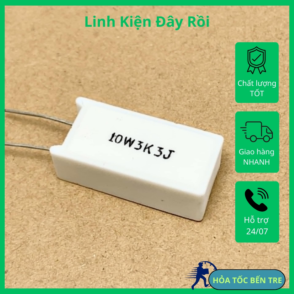 Điện trở sứ 10W 3.3Kohm 3.3KR 3K3J kích thước 16x30mm, hàng mới, có sẵn, đảm bảo chất lượng, đổi trả 30 ngày, ship hàng toàn quốc.