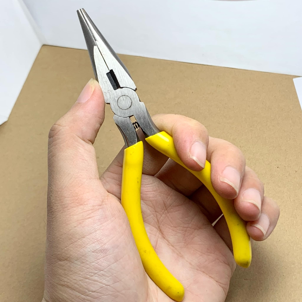 Kềm mỏ nhọn gấp linh kiện nhỏ. Tay cầm bọc cao su cách điện.