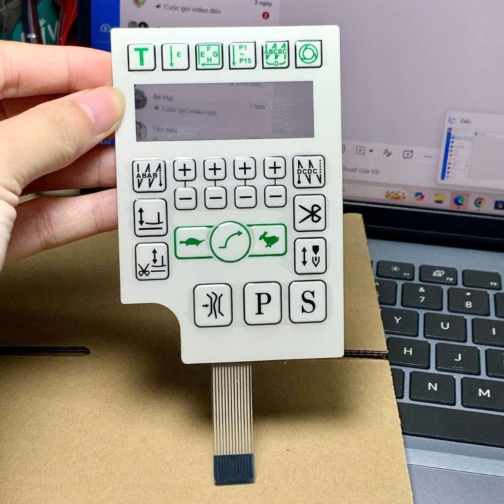 Miếng dán bàn phím màn hình máy may 1 kim QIXING HULONG PS xanh lá cam.
