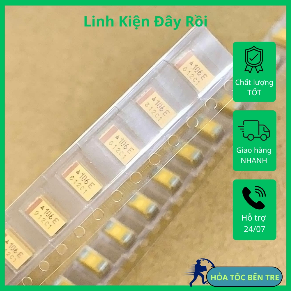Tụ dán SMD 106C 25V 10uF 6032C 6x3.2x2.6mm, hàng mới, có sẵn, đảm bảo chất lượng, đổi trả 30 ngày, ship hàng toàn quốc.