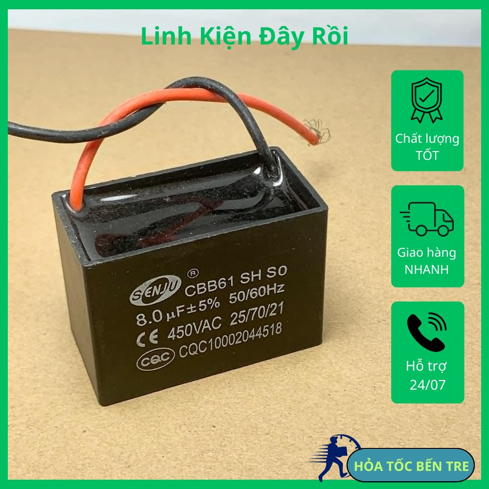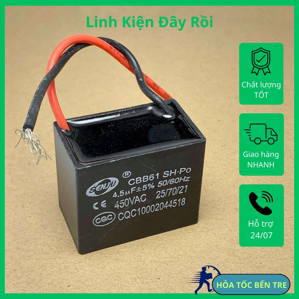 Tụ khởi động quạt motor tụ vuông hãng Senju 450VAC 1uF 1.2uF 1.5uF 1.8uF 2uF 2.5uF 3uF 3.5uF 4uF 4.5uF 5uF 6uF 7uF 8uF 12uF 15uF 18uF 20uF, hàng mới, có sẵn, đảm bảo chất lượng, đổi trả 30 ngày, ship hàng toàn quốc.