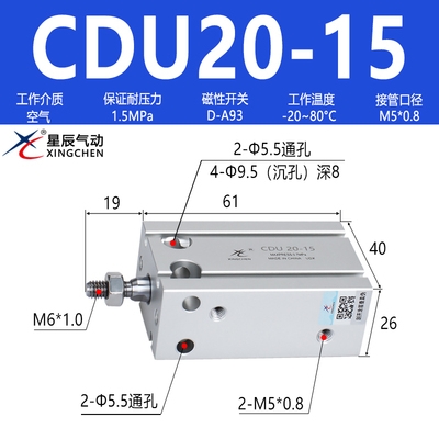 Xy lanh khí nén CDU 20-15 CDU20-15 CDU2015 CDU-2015 hàng mới, có sẵn, đảm bảo chất lượng, đổi trả 30 ngày, ship hàng toàn quốc.